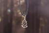 Ein kleines Amulett mit zwei Schlangen und einem schwarzen Herzen