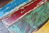 Für den besonderen Charme sorgt die einzigartige Tischplatte, die aus antiken, recycelten Schiffsplanken gezimmert wurde