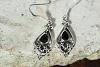 Elegante, mittelalterliche Schmuck-Ohrringe mit schwarzen Onyxsteinen.