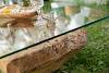 Die edlen Stahlstifte verleihen der rustikalen, kleinen Anrichte einen modernen Touch, die starke Glasplatte bietet nicht nur Eleganz sondern auch viel Abstellfläche.