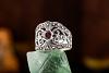 Feine Muster mit Herzen und funkelnde Markasit-Steinchen zieren dieses Prunkstück.