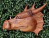 Ein Drachenkopf als Wanddekoration, handgearbeitet aus edlem Holz.
