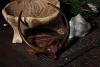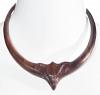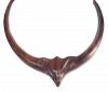 Dieser Halsreif, ein keltischer Torques mit einem Drachenkopf ist handgeschnitzt und aus Sono-Holz.