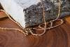 Eine feine, lange Halskette mit kleinen Kügelchen, aus edler Bronze.