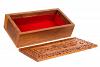 Ausgelegt mit einem weichen roten Stoff.