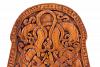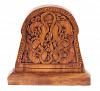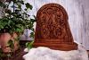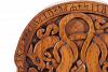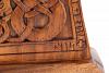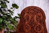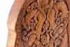 Eine Nachbildung eines Wikinger Bildsteines mit eingeschnitzten Runen.