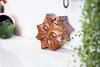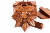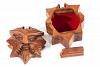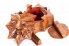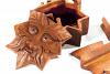Die vierteilige Schmuckschatulle lässt sich durch das Herausziehen eines Holzstiftes öffnen und sicher wieder verschließen.