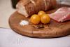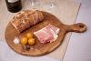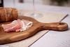 Das charakterstarke Holzbrett hat einen super praktischen Griff.