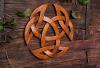 Der keltische Knoten der Dreiheit ist in traditioneller Handwerkskunst liebevoll aus Holz geschnitzt.