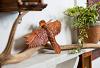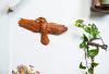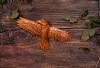 Ein aus Holz geschnitzter Rabe Odins als Wanddekoration.