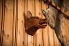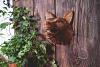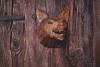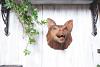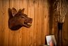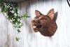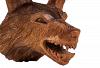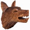 Ein von Hand geschnitzter, mächtiger Wolf als Deko für die Wand.