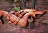 Ein großer, mit Wikingermustern verzierter Drache im Urnesstil.