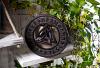 Mächtiges Holz Bild mit dem starken Wikinger Knoten im Herzen und einem mächtigen Band aus Runen.