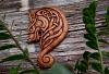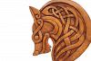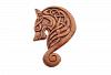 Das aus Holz gearbeitete, Holzpferd ist kunstvoll verziert.