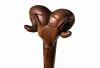 Ein langer, mittelalterlicher Wanderstab mit imposantem Widderkopf.