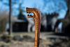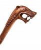 Ein wikingerzeitlicher Drachenkopf auf einem langen Stab.