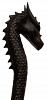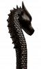 Ein schwarzer Drachen-Wanderstab, aus Holz geschnitzt. Die noch vorhandenen Stäbe wurden stark reduziert da sich diese gewölbt haben