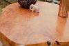 Die Tischplatte mit fantastischer Holzmaserung wirkt sehr edel.
