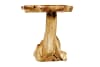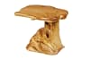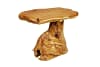 Der Fuß des modernen, kleinen Möbelstücks ist aus einem einzigen Stück Teakwurzelholz gearbeitet.