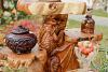 Massives & charakterstarkes Holzregal mit einem imposanten Drachen.