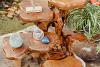 Die Holzregale haben ein naturverbundenes und rustikales Design. Grobe Strukturen und Äste vollenden die einzigartige Form.