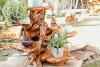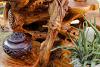 Aus Teakwurzel gezimmertes Regal, dass Wärme und Natürlichkeit in dein Heim weht.