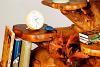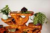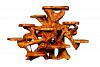 Das Wurzelgeflecht bietet die Basis des stabilen Holzregals. Darauf sind die 9 Abstellflächen stilvoll positioniert. #