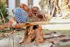 Die Holz Möbelstücke haben ein naturverbundenes und rustikales Design. Grobe Strukturen und Äste vollenden die einzigartige Form.