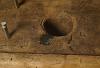 Das antike Möbelstück hat eine runde Mulde in der Mitte.