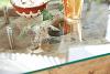Die elegante und robuste Glasplatte wird von 4 erlesenen Edelstahl-Stiften getragen.