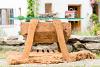 Stilvoller Design Tisch aus einem antiken, traditionellen Pflanz-Trog.