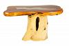 Die Glasplatte fügt sich durch ihre gewellte Form perfekt in die edle Tischplatte.