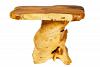 Der rustikale und äußerst massive Wohnzimmertisch ist aus Teak-Wurzeln gezimmert.