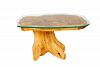 Der Couchtisch wurde von Hand geschnitzt und trägt eine kleine Schildkröten-Familie in sich.