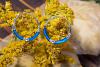 Die eleganten Silber-Creolen sind mit blauen Elementen und einer Silber-Kugel verziert, die dem Schmuckstück eine frische, lebendige Ausstrahlung verleihen.