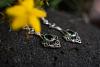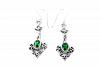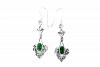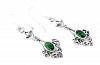 Lange Schmuck-Ohrhänger mit zauberhaften, keltischen Knoten und dunkelgrünen Steinen.