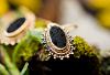 Bezaubernde Ohrringe mit großen Onyxsteinen, aus Bronze.