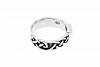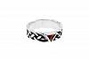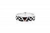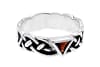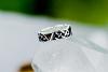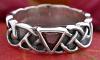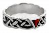 Der dreieckige Stein hat einen kubischen Facettenschliff und ist von einem keltischen Knotenmuster umgeben.