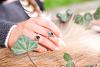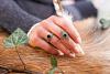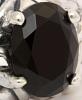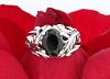 Der große, schwarze Schmuckstein hat einen zauberhaften Schliff und wird von einem Muster aus Silber-Blättern gehalten.