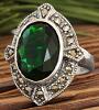 WINDALF Bohemia Ring SIANA 25 mm Grüner Smaragd Markasit-Schmuck Silber (Bestnr.: r167-3)