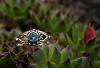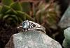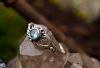 Der himmelblaue Topas sorgt für geheimnisvolles Funkeln und unterstreicht den verspielten und lieblichen Stil des zarten Ringes.
