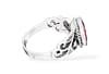 Der edle Silberring besticht durch seinen leuchtend roten Zirkonia-Stein, der in einem zarten Ornament-Design aus Blättern und Spiral-Mustern eingefasst ist.