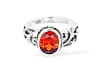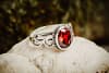 Eleganter Silberring mit rotem Stein und filigraner Ornamentik