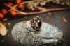 Ein großer, rustikaler Mittelalter-Ring mit einem tief-schwarzen Onyxstein.