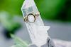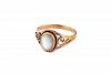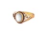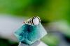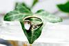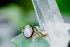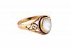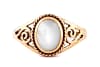 Ein feiner Ring mit Spiralen und einer schillernden, weißen Perlmuttmuschel.