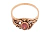 Ein zauberhafter Ring, veredelt mit einem blutroten, perfekt geschliffenen Kristall.