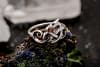 Ein Wikinger-Ring mit einem harmonisch geflochtenen Knotenmuster und Drachenkopf.