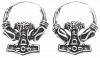 Robuste Creolen als Mittelalter-Ohrschmuck mit einem mächtigen Thorshammer.