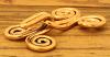 Die Spiralen sind zweiteilig und können miteinander verbunden werden und dienen somit wunderbar als Gewandschließe.