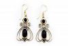 Mittelalterliche Schmuck-Ohrringe mit schwarzen Onyxsteinen aus edler Bronze.